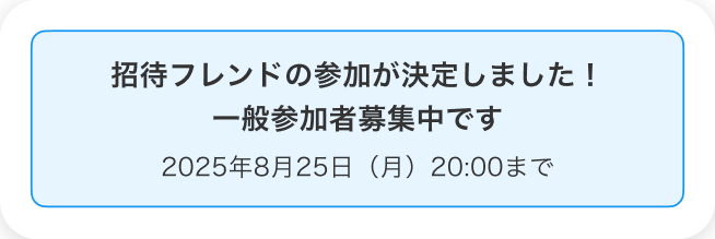 参加者には、グループ作成時に主催者がフレンドの中から任意で指定できる「招待フレンド」と、一般募集から応募して参加者に選定される「一般応募ユーザー」の2種類があります。