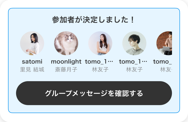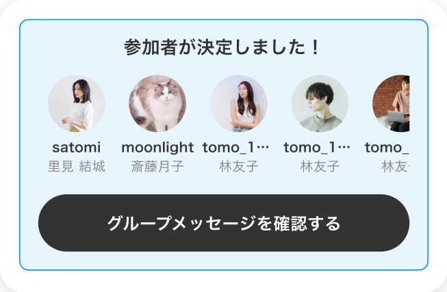 参加者が決定するとグループが開催決定となり、参加者とのグループメッセージ機能が利用可能になります。